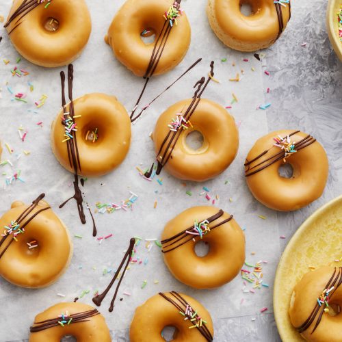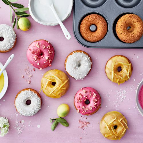 - Kasta jäähtyneet donitsit kuorrutukseen tai sivele kuorrutusta pinnalle lastan avulla.