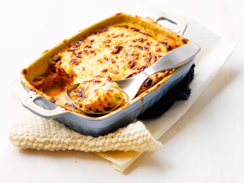 - Lado uunivuokaan kerroksittain vuorotellen kasviskastiketta, kesäkurpitsaviipaleita ja juustokastiketta.