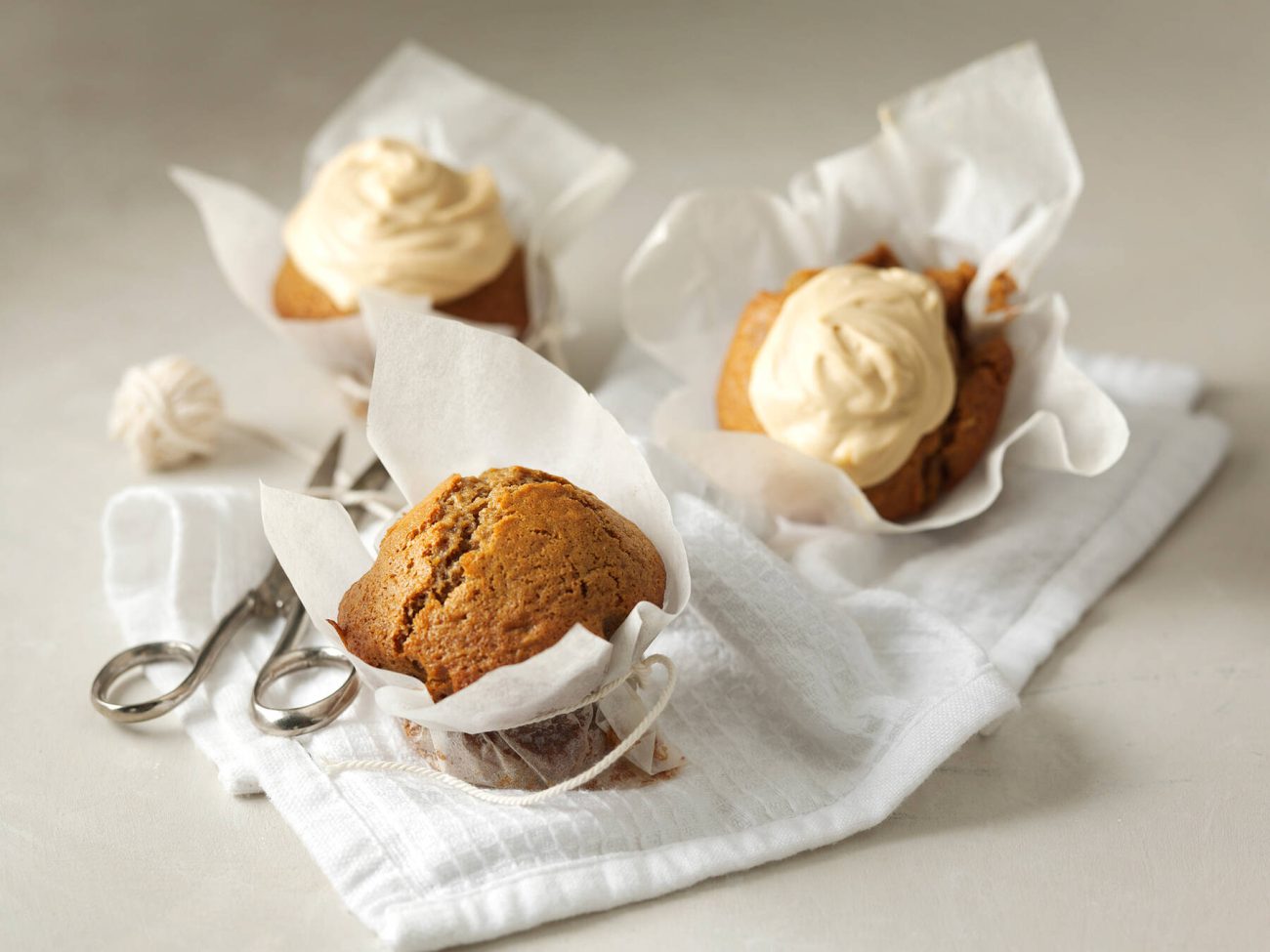 - Liuota kuorrutuksen murukahvi maitoon ja sekoita notkistettuun tuorejuustoon. Lisää siivilän läpi tomusokeri ja sekoita tasaiseksi. Levitä kuorrutusta muffinien pintaan.
