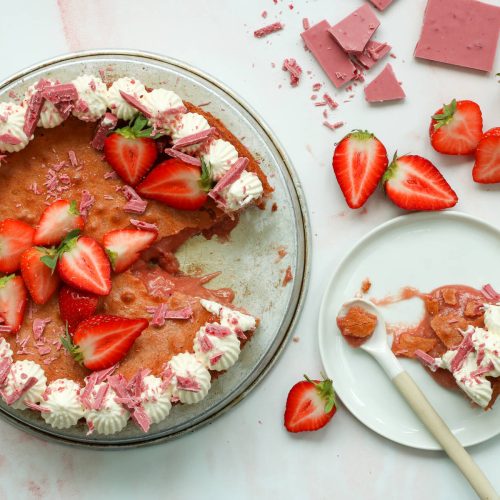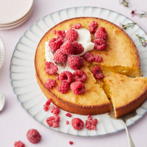 - Anna kakun jäähtyä hetki. Irrota vuoan reunaosa. Siirrä kakku tarjoiluvadille.