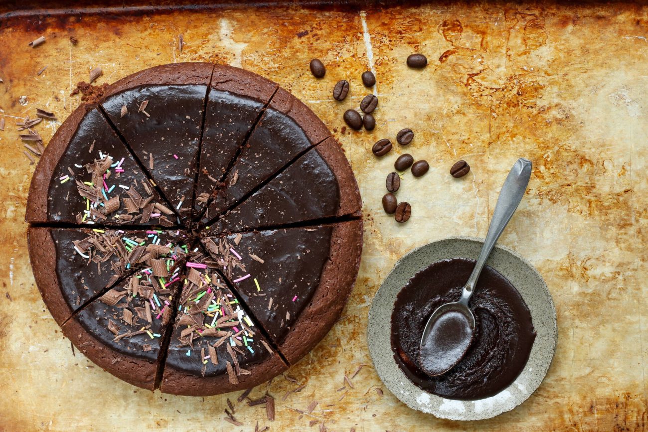 - Sulata voi kattilassa. Lisää kahvi. Sihtaa tomusokeri ja kaakaojauhe siivilän läpi voi-kahviseokseen. Sekoita kunnes tasaista. Ota pois liedeltä ja anna hetken jäähtyä. Levitä kuorrutetta mutakakun pintaan ja koristele.
