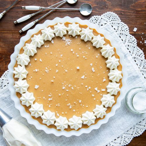 - Pingota leivinpaperi irtopohjavuoan (Ø 20 - 22 cm) pohjan ja reunojen väliin. Kaada taikina vuokaan.