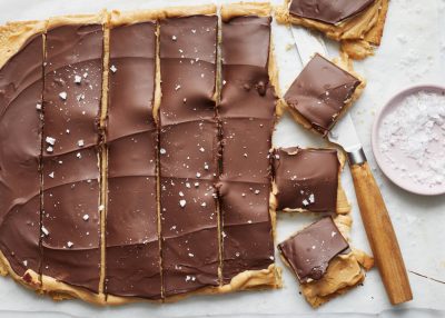- Siirrä yksi levy pellille leivinpaperin päälle ja painele haarukalla. Siirrä toinen levy myös pellille leivinpaperin päälle ja leikkaa 12 osaan. Voitele 12 palaa kanamunalla. Paista pohja sekä palat 200 asteessa n. 12 min. Anna jäähtyä.