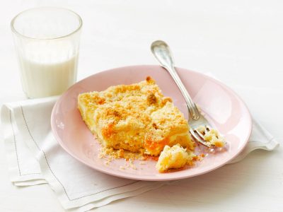 - Levitä taikina nektariinien päälle pannulle ja siirrä pannu uuniin. Paista 200 asteessa noin 20 min tai kunnes on pinnalta kullanruskea.