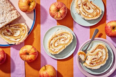 - Vaahdota kerma. Sekoita joukkoon jogurtti, calvados ja sokerit. Pyöräytä joukkoon omenasosetta jättäen vaahto raidalliseksi.