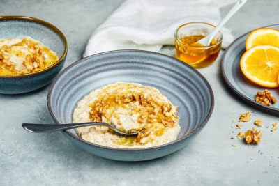 - Jäähdytä puuro, nosta jääkaappiin ja anna viilentyä jääkaappikylmäksi. Lisää loppu kerma. Vaahdota kuohkeaksi sähkövatkaimella.