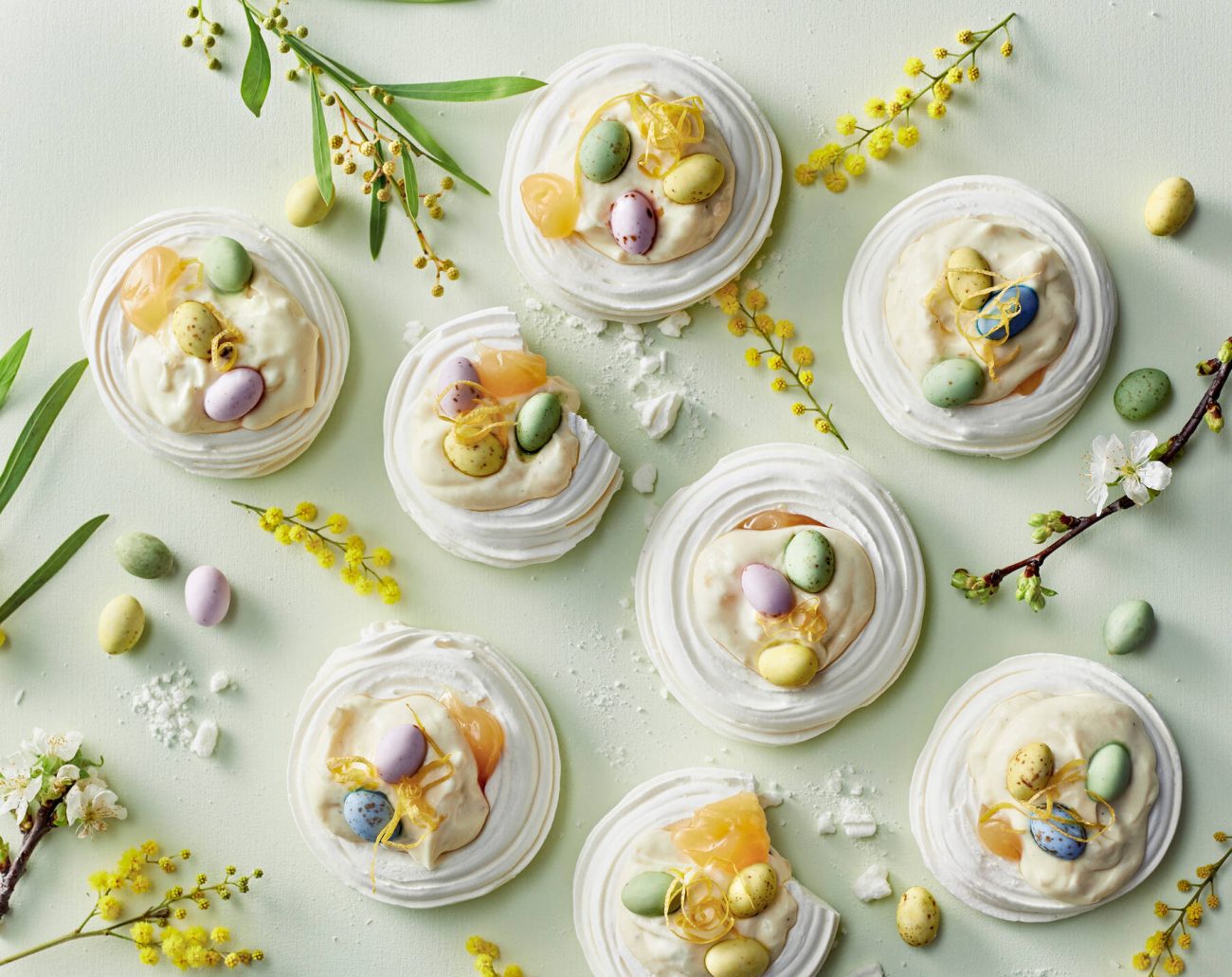 - Pursota marenkivaahdosta kuusi pientä pyöreää marenkipesää, niin että reunat ovat korkeammat kuin keskusta. Voit halutessasi tehdä myös yhden ison marenkipesän.
