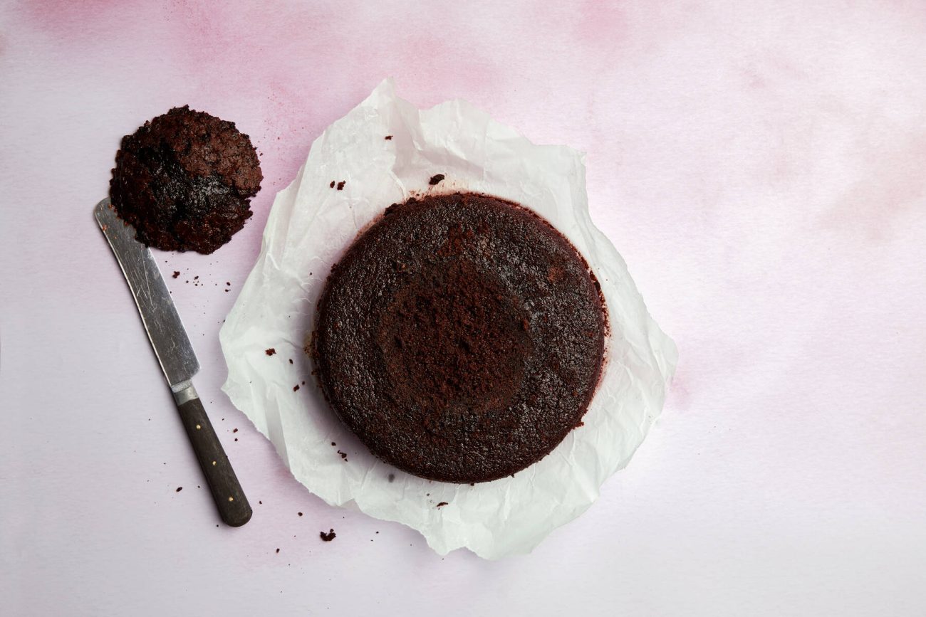 - Pingota leivinpaperi kahden Ø 23 cm:n tai kolmen ø 18 cm:n irtopohjavuoan reunojen ja pohjan väliin. Jaa taikina vuokiin. Kakkupohjat paistuvat tasaisemmin ja pysyvät mehevämpinä, kun ne paistaa useammassa vuoassa. Jos paistat kakkupohjan yhdessä vuoassa, pidennä paistoaikaa n .10 min.