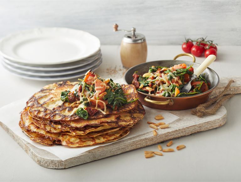 - Lusikoi seosta letun päälle. Viimeistele juustoraasteella ja kietaise lettu rullalle.