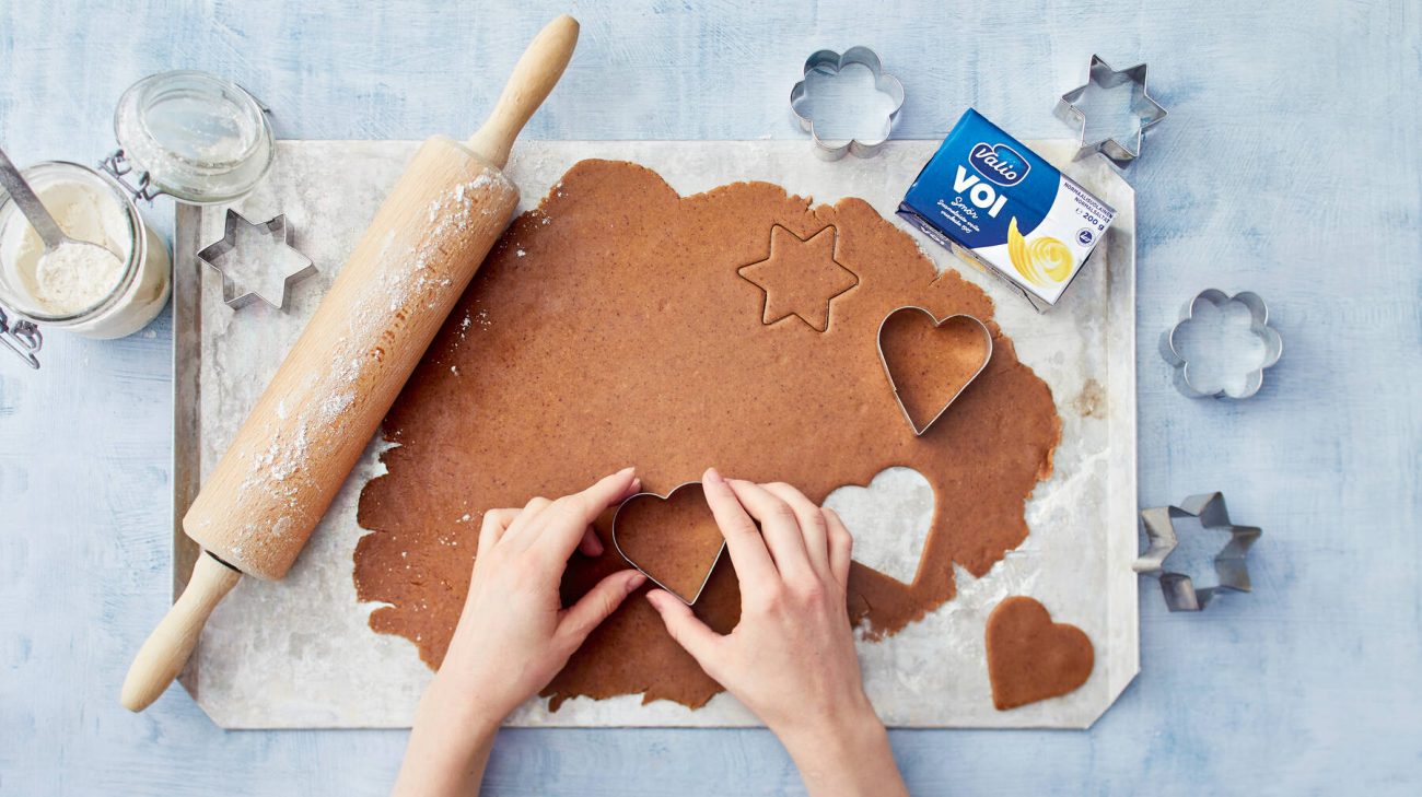 - Kauli taikinasta mahdollisimman ohutta levyä jauhotetulla pöydällä. Ota muotilla pipareita. Paista uunin keskiosassa 200 asteessa n. 5 min. Kypsennysaika riippuu uunista ja piparkakkujen paksuudesta. Tarkkaile kypsymistä, etteivät piparit paistu liian tummiksi. Tarjoa glögin kanssa tai kahvipöydässä.