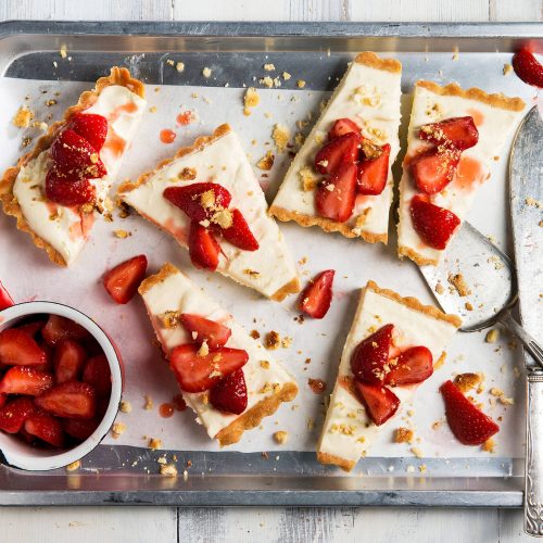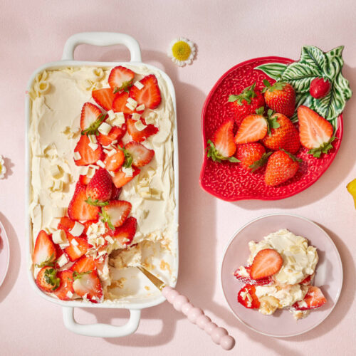 - Levitä marjat pohjalle, paloittele mansikat tarvittaessa.