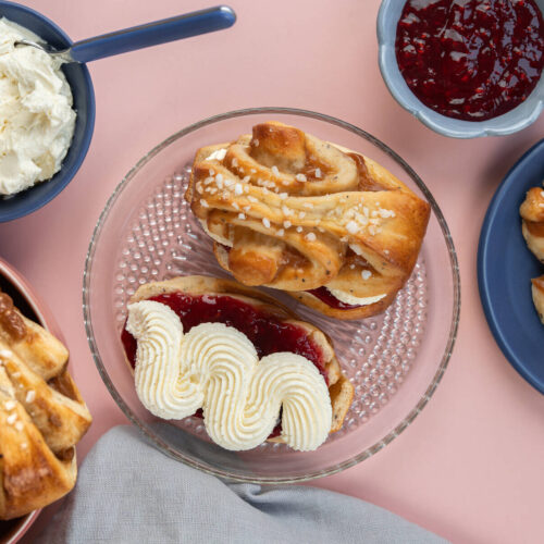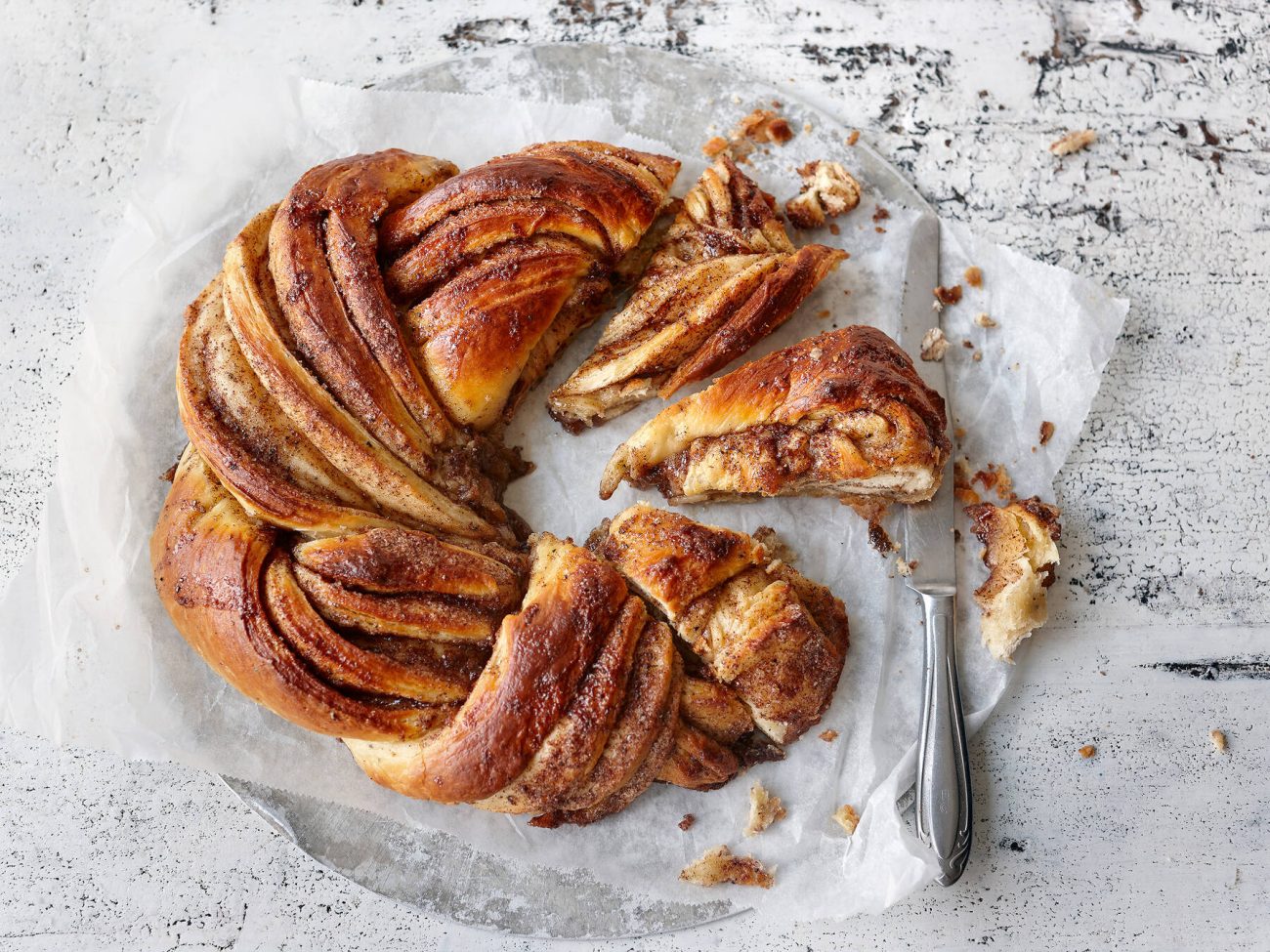 - Kierrä taikinaletit ensin itsensä ympäri ja sitten toistensa ympäri. Asettele pitko ympyrän muotoon, nipistä päät yhteen. Anna kohota vedottomassa paikassa peitettynä.