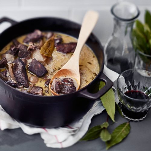 - Minimipaistoaika vaihtelee 4 - 6 tuntiin uunin, paistoastian ja lihan mukaan. Lihan pidempi kypsennysaika mureuttaa lihaa. Ruoan voi tehdä valmiiksi jo edellisenä päivänä, sillä se paranee makujen tiivistyessä. Lämmitä ennen tarjoilua.