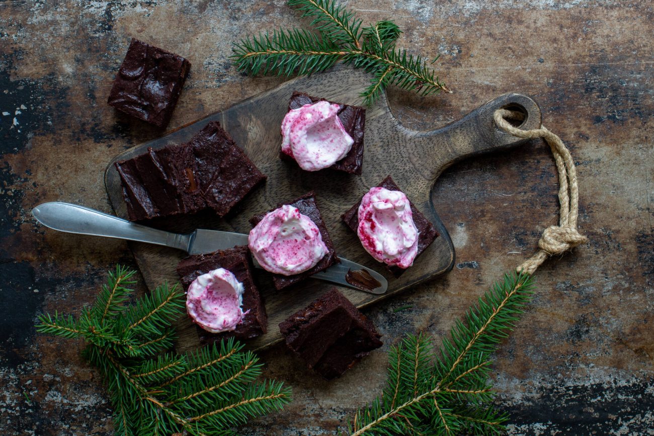 - Tarjoa brownien kanssa kermavaahtoa, marmoroi sitä halutessasi pienellä määrää punajuurisosetta.