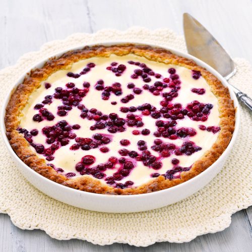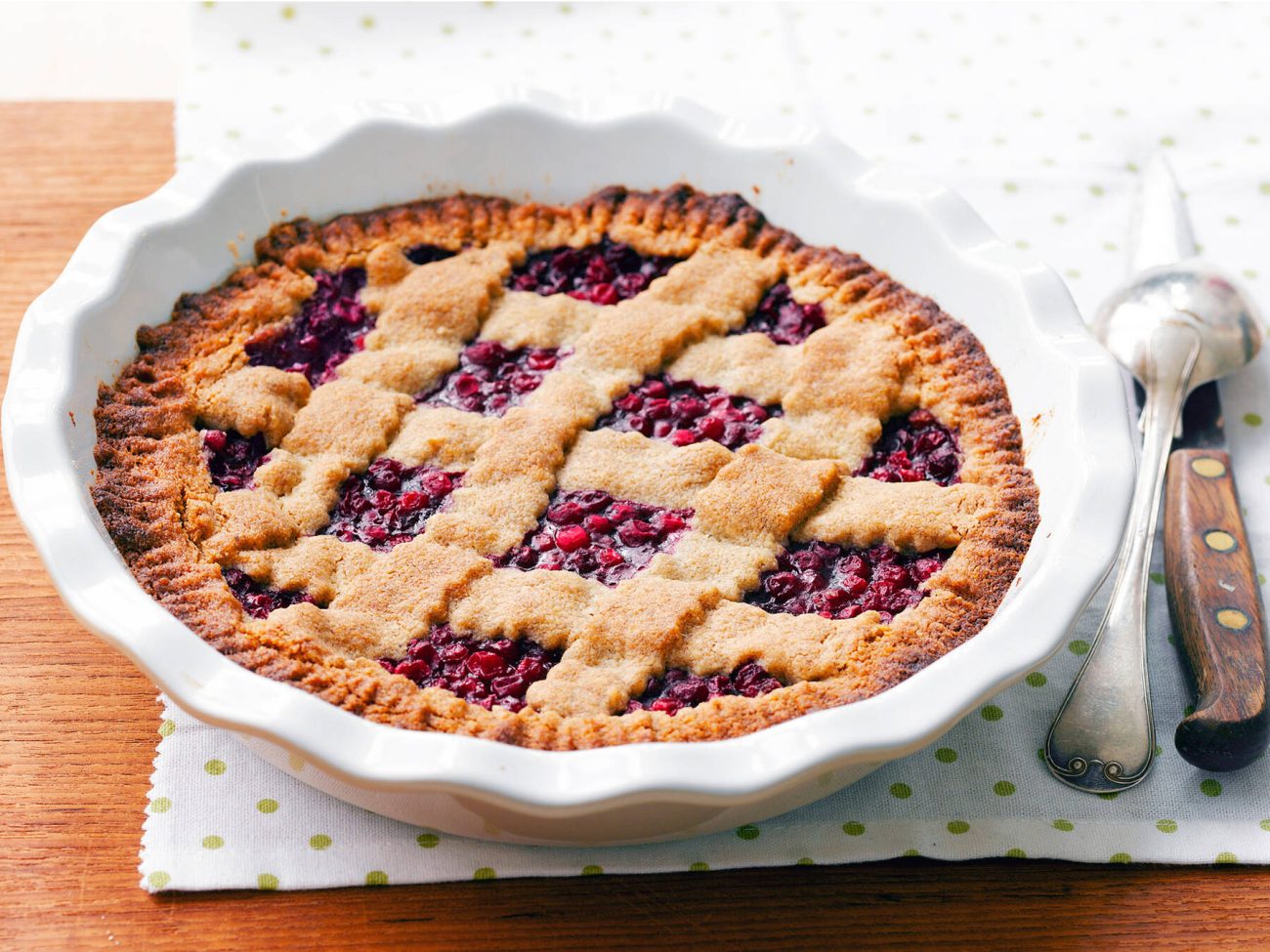 - Sekoita puolukoiden joukkoon sokeri ja perunajauhot. Kaada seos vuokaan taikinan päälle. Kaaviloi loppu taikina leivinpaperin päällä n. 1 cm:n vahvuiseksi levyksi. Ota siitä muotilla sydämiä tai leivinpyörällä nauhoja. Lisää puolukoiden päälle.