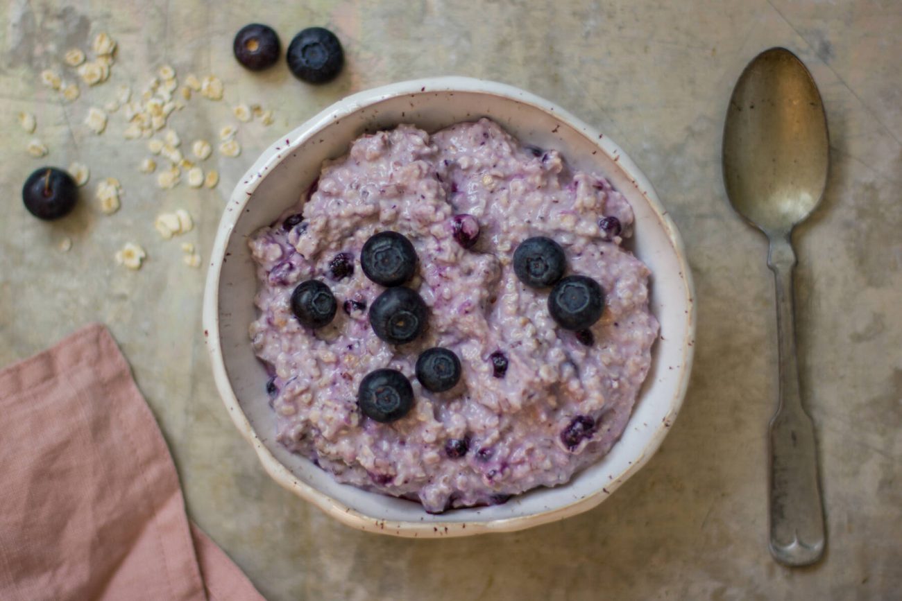 - Mittaa ainekset kulhoon mustikoita lukuunottamatta. Sekoita tasaiseksi ja lisää mustikat lopuksi joukkoon.