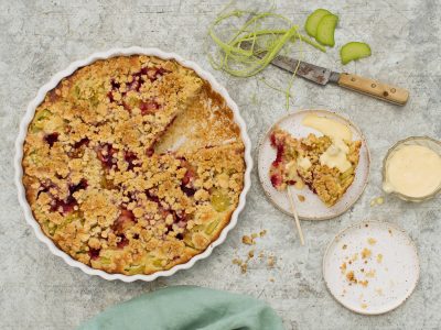 Raparperi on kevään ja alkukesän todellinen kausiherkku. Lempeän täyteläinen juustokakku ja kirpakka raparperi ovat täydellinen yhdistelmä. Kakun kaunis koristelu syntyy raparperivarsien kuorista.