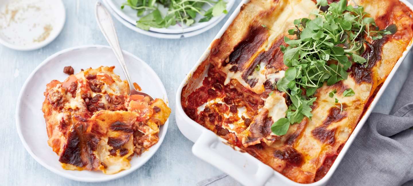 Mehevä lasagne on herkkuruokaa, josta riittää kerralla syötävää isommallekin joukolle. Lasagne on perinteinen italialainen ruoka, joka koostuu kerroksittain asetetuista pastalevyistä, jauhelihakastikkeesta ja juustokastikkeesta. Lasagnesta löytyy useita versiota ja voit helposti tuunata suosikkireseptiäsi. Lasagneen voi käyttää myös kalaa, broileria, kasviksia tai Mifua. Katso kaikki herkulliset lasagnereseptit ja löydä oma suosikkisi!