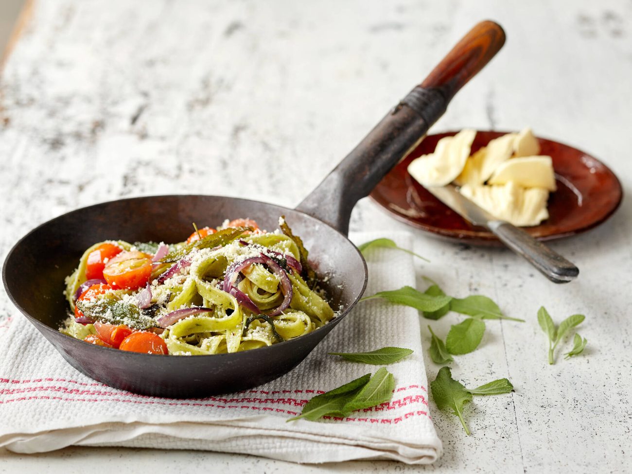 - Pastan kiehuessa sulata Oivariini paistinpannulla.