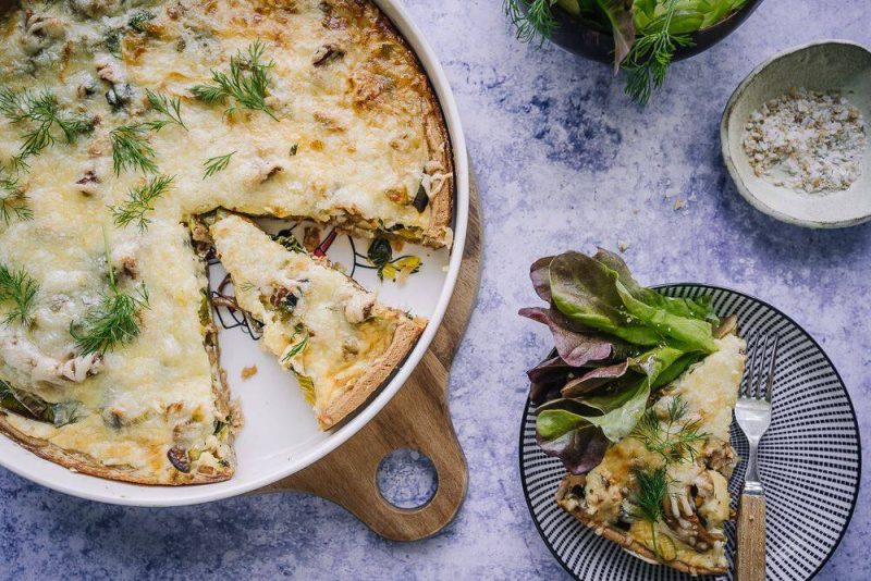 - Paista piirakkaa 200 asteessa noin 20–30 minuuttia, kunnes täyte on hyytynyt ja ruskistunut. Anna jäähtyä hetki ennen tarjoilua.