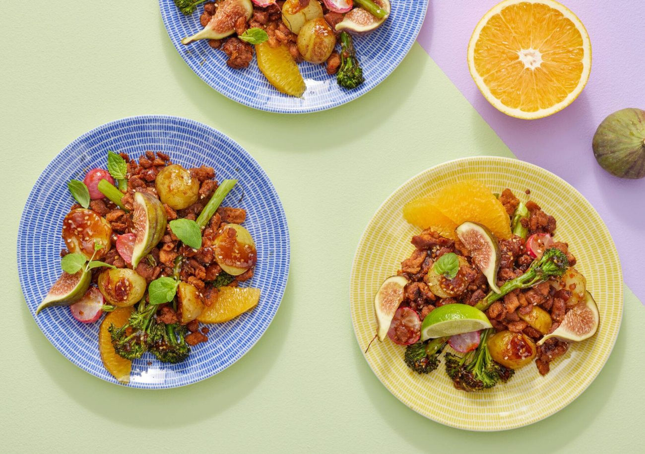 - Lisää uunipaahdettuun vihannesseokseen Delikaura kylmänä tai lämmitettynä. Lisää appelsiini, viikunat ja hienonnetut yrtit. Kaada joukkoon kastike ja tarjoa limen kanssa.