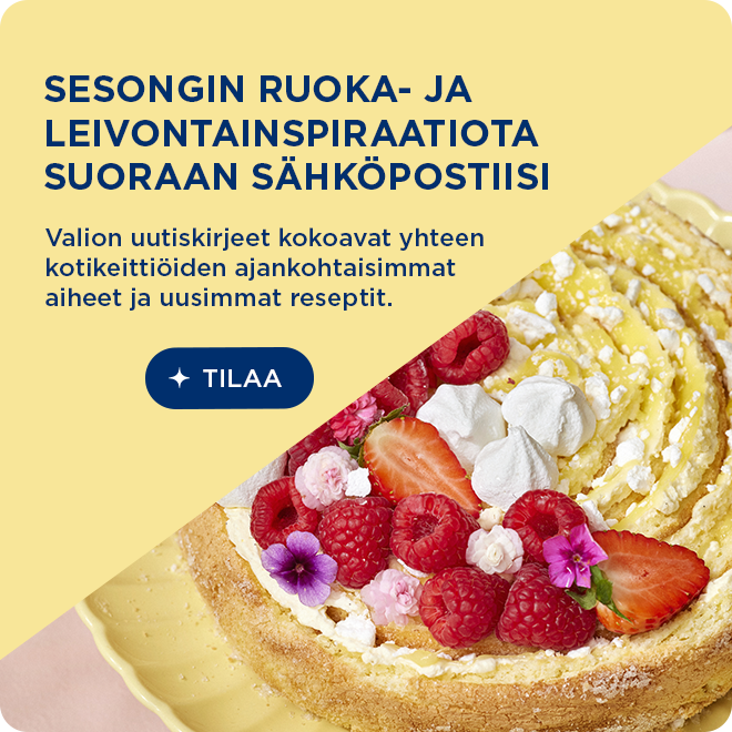 Hae parhaat reseptit onnistuvaan kotikokkaukseen kattavasta reseptihausta. Löydä reseptit erilaisiin ruokavalioihin, ajankohtaisiin sesonkeihin, satokauden raaka-aineisiin, ruoanlaittoon ja leivontaan.