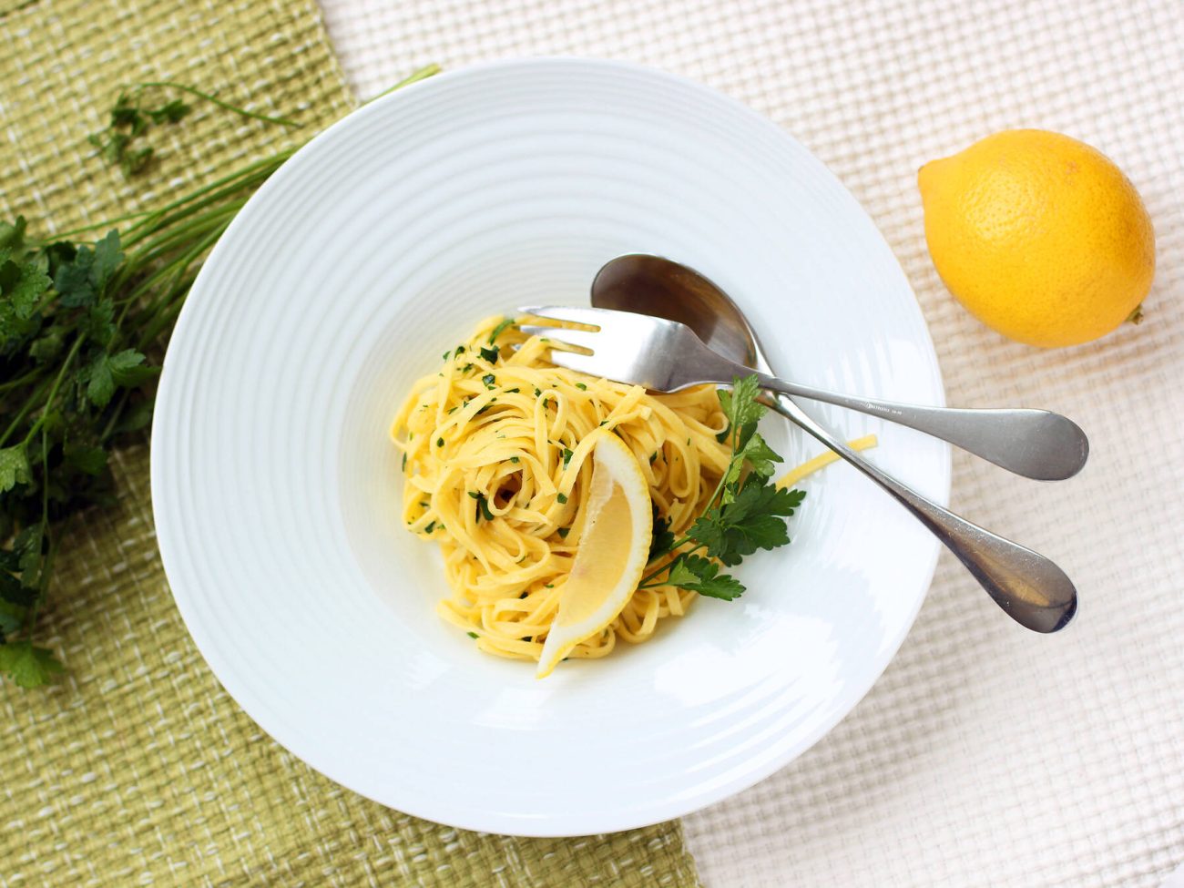 - Paloittele joukkoon voi. Sekoittele, kunnes se on sulanut pastan joukkoon. Lisää sitruunan kuoriraaste, mehu ja persilja.