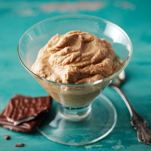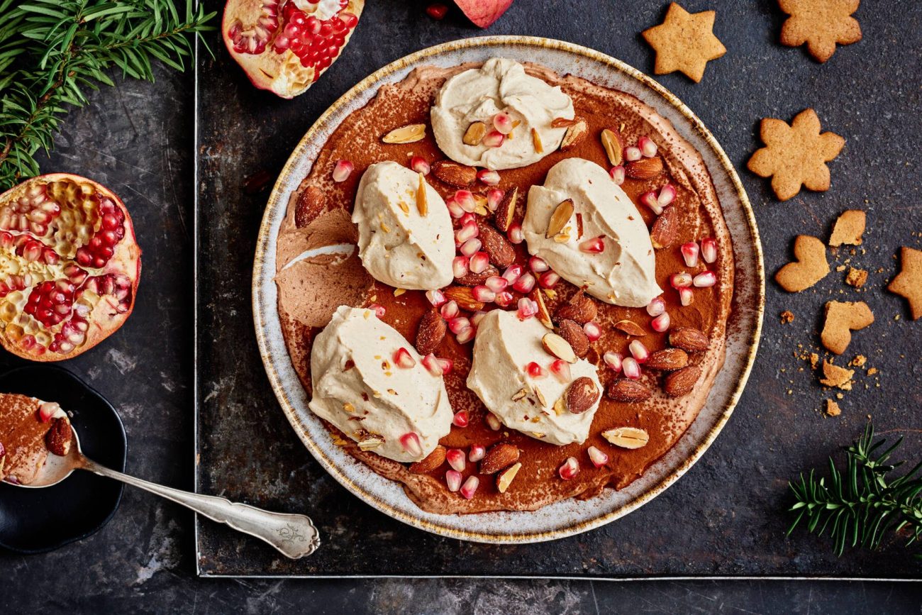 - Nosta tekeytynyt mousse huoneenlämpöön, sihtaa pinnalle kaakaojauhetta ja lusikoi piparkakkuvaahtoa nokareina pinnalle.