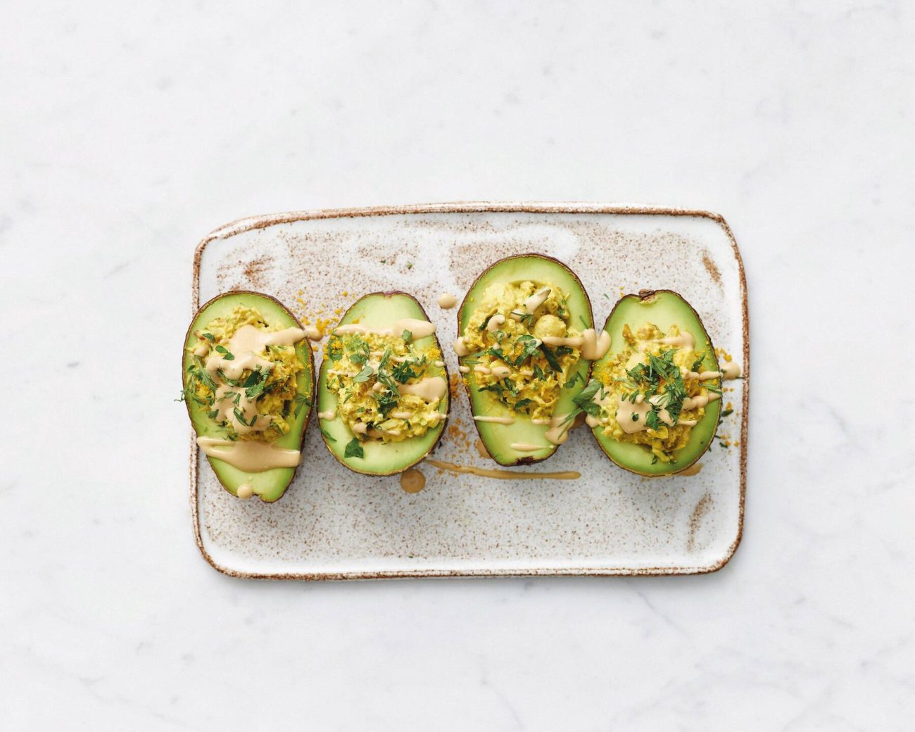 - Täytä avokadojen kolot Nyhtökauraseoksella.