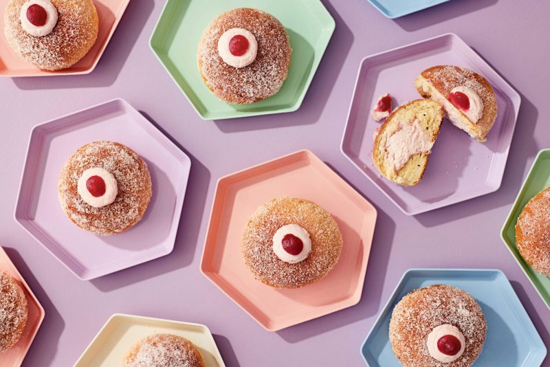 - Voitele pullat voilla ja kasta pinta sokerissa. Pursota halutessasi vaahtoa ja marmeladia pullien pinnalle.