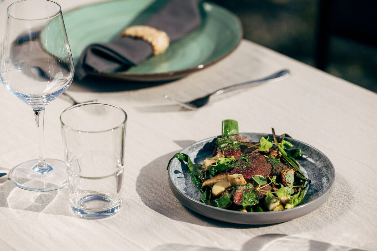 Poro on yksi Lapin arvostetuimpia raaka-aineita, eikä suotta. Grillatun ulkofileen kanssa sopivat sesongin metsäsienet, kevätsipuli ja chimichurri-kastike.