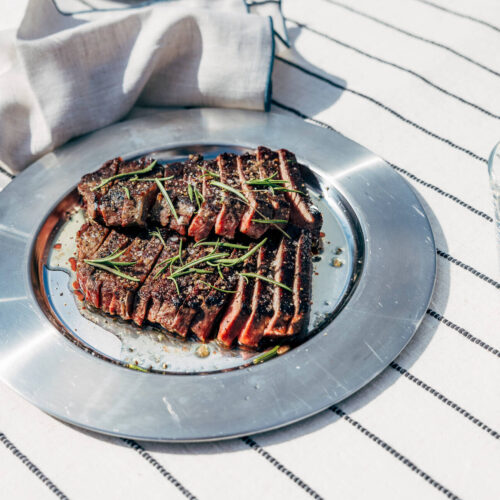 - Grillaa fileetä grillissä molemmin puolin 1-2 minuuttia saavuttaaksesi medium-kypsyyden. Anna lihan vetäytyä 5-10 minuuttia.