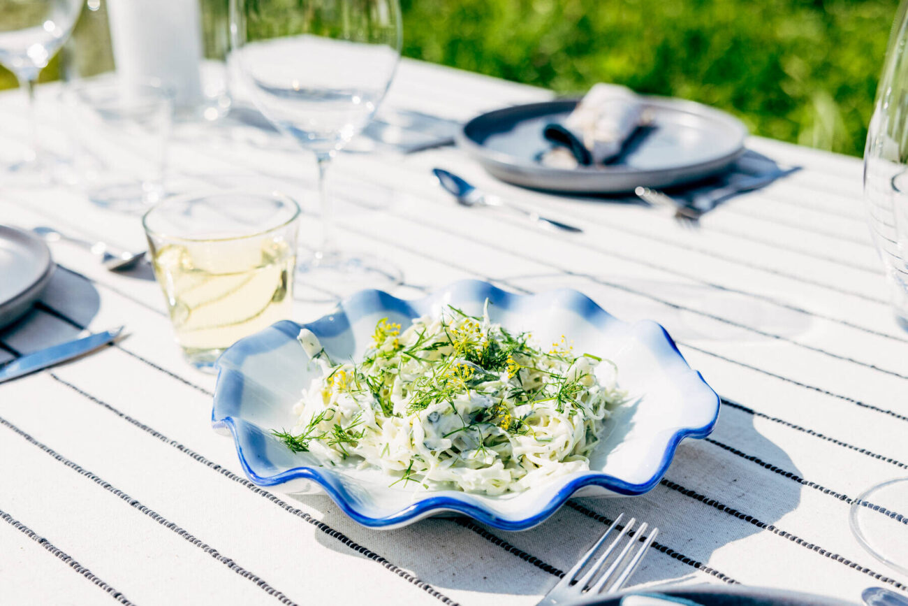 - Yhdistä kastike kaalin joukkoon juuri ennen tarjoilua ja koristele tillin kukinnoilla.