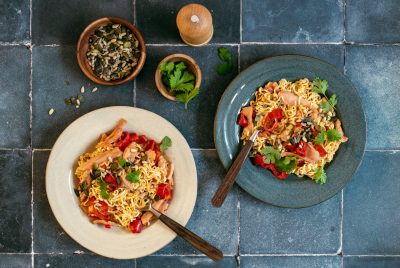 - Ruskista nyhtökaura öljyssä, lisää salaatin joukkoon juuri ennen tarjoilua.