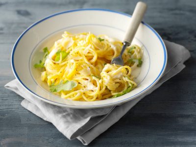- Keitä pasta suolatussa vedessä pakkauksen ohjeen mukaan.