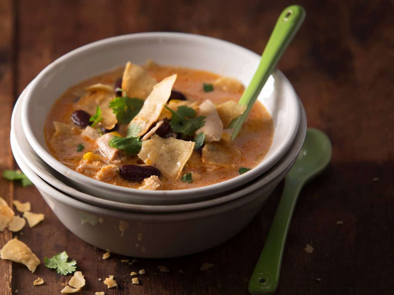 - Revi tai leikkaa kalkkunanliha pienemmiksi paloiksi. Huuhtele ja valuta pavut, valuta tarvittaessa myös maissi. Lisää keittoon. Anna kiehua n. 3 min kannen alla. Lisää joukkoon hyvin keskenään sekoitettu vehnäjauho-vesisuurus. Anna kiehua hiljalleen vielä muutama min.