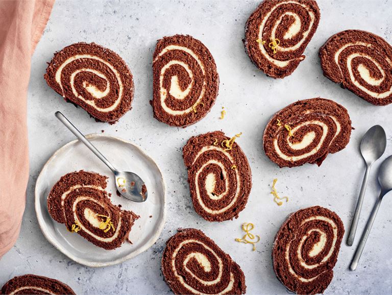 - Sekoita kreemi ja rahka. Levitä seos jäähtyneelle kääretorttupohjalle. Kääri rullaksi. Anna tekeytyä hetki kylmässä ja leikkaa paloiksi.