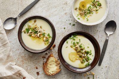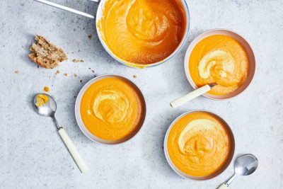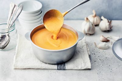 - Lisää hienonnettu salaattijuusto ja sekoita, kunnes juusto on sulanut. Soseuta keitto.