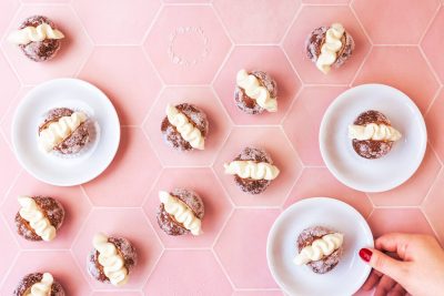 - Keitä kerma ja fariinisokeri keskilämmöllä kastikkeeksi (n. 15 min.). Lisää lopussa voi. Dippaa munkkien pinta kastikkeessa. Anna jämähtää hetki.