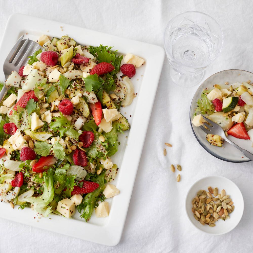 Täytettyjen leipien ja kananmunaruokien lisäksi aamiaisella maistuvat jogurtit ja juotavat välipalat sekä tietysti tuoremehu. Kaada lasiin ja nauti!