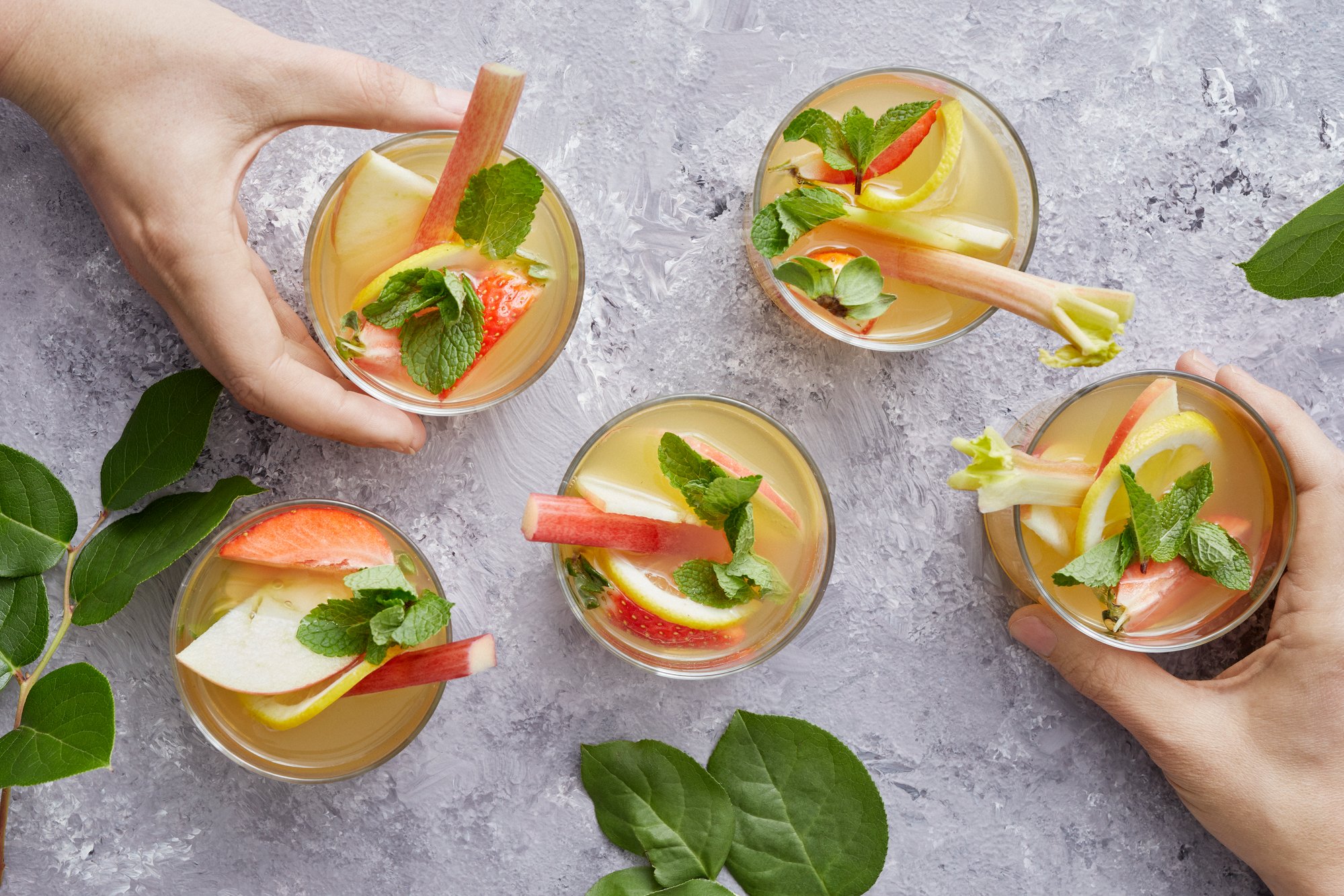 Tämän parempaa kesäjuomaa saa etsiä! Raikas puutarhasangria sekoitetaan omenamehusta ja kuivasta valkoviinistä. Viimeistelystä vastaavat omena- ja sitruunalohkot, raparperi mansikat ja jääpalat. Valmista kymmenessä minuutissa!