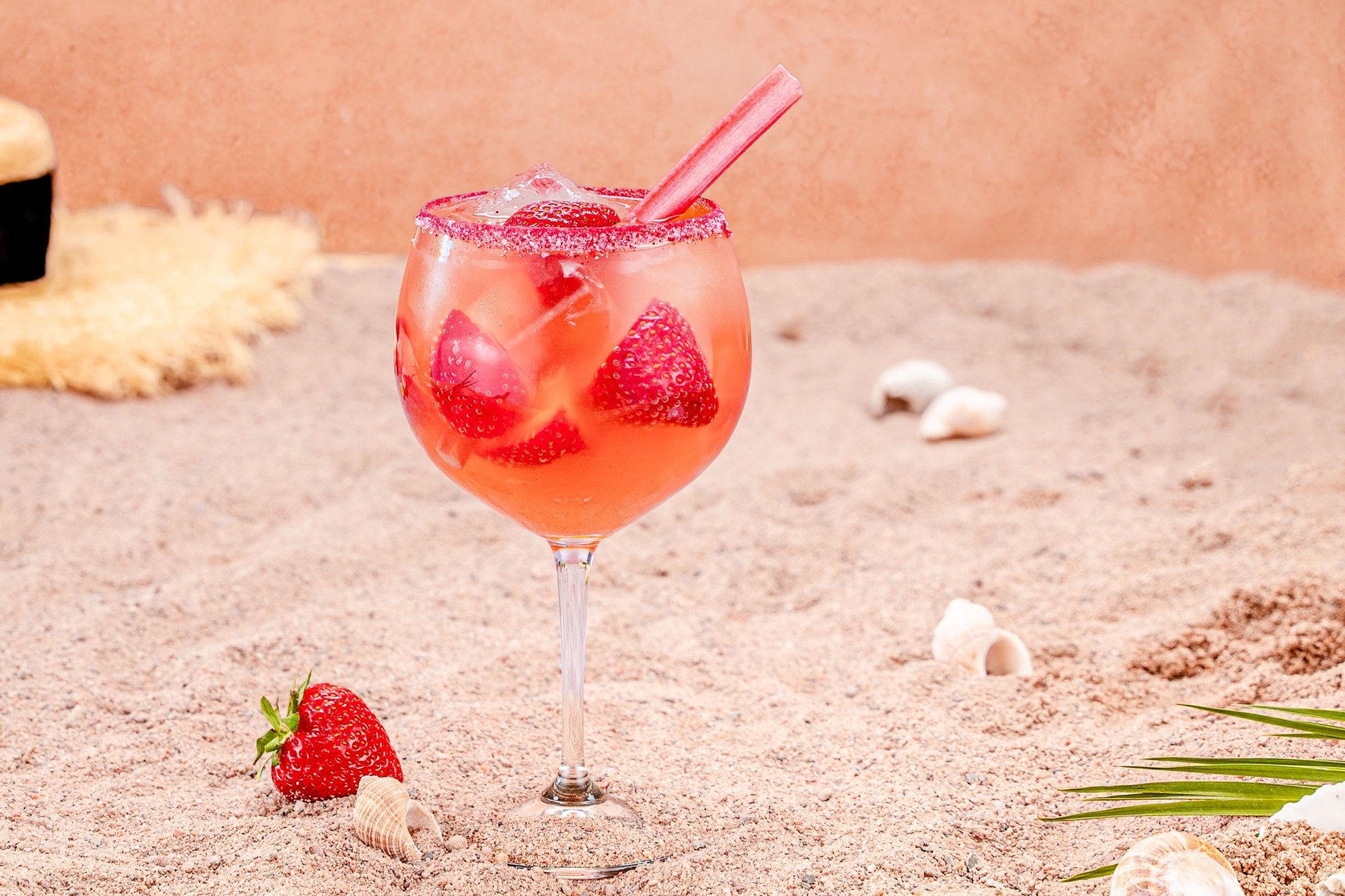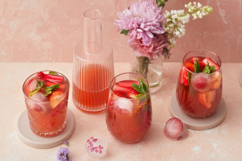 Kepeä ja kupliva mansikka-raparperisangria on mainio valinta juhannuksen alkumaljaksi. Simppelin juoman valmistus on helppoa: sekoita vain mehu ja kuohuviini tai kivennäisvesi, ja koristele sangria tuoreilla mansikoilla, raparperilla sekä jääpaloilla.