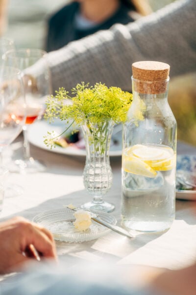 Alkoholijuomien ohella rapujuhlapöytään on syytä kattaa aina myös alkoholittomia vaihtoehtoja sekä raikasta vettä tai kivennäisvettä.