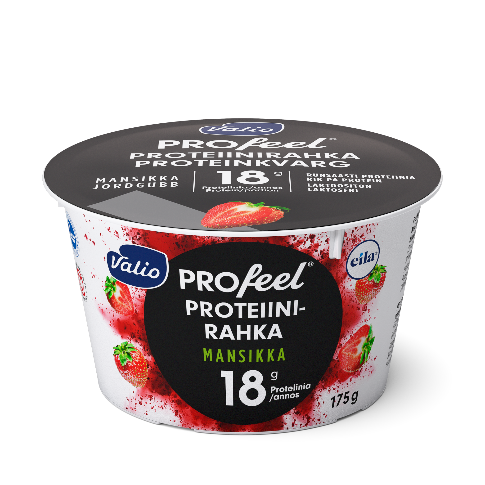 Ruoki tavoitteitasi proteiinilla! Valio PROfeel® proteiinirahka mansikka on pehmeä ja mansikkainen välipala. Nauti rasvaton ja laktoositon proteiinirahka vaikkapa töissä välipalana tai treenien jälkeen. Yhdessä pakkauksessa on 17 g laadukasta maitoproteiinia, joka sisältää kaikki elimistön tarvitsemat yhdeksän välttämätöntä aminohappoa samassa paketissa. Kokeile myös muita herkullisia makuja!