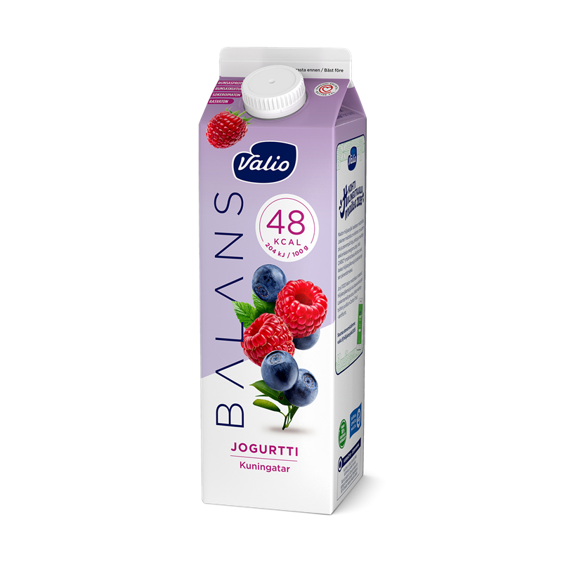 Valio Balans kuningatarjogurtti on raikkaan marjaisa, sokeroimaton ja rasvaton jogurtti arjen moniin hetkiin. Valio Balans -tuotteet on suunniteltu syömisen pitkäjänteiseen tasapainottamiseen, ja ne yhdistävät hyvän maun sekä ravintosisällön. Jogurtti sisältää runsaasti kuitua ja proteiinia. Siihen on myös lisätty kromia, joka edistää veren glukoositasojen pysymistä normaalina. Nauti osana tasapainoista ja monipuolista ruokavaliota ja terveitä elämäntapoja. Tuotteella on Sydänmerkki.