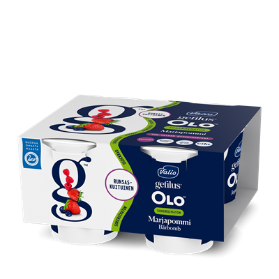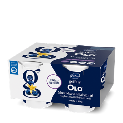 Valio Gefilus® OLO™ jogurtit nautinnolliseen oloon! Valio Gefilus® OLO jogurtit houkuttelevat hemmottelemaan vatsaa helposti ja herkullisesti aamuin illoin, osana tasapainoista ja monipuolista ruokavaliota sekä terveitä elämäntapoja. Ne sisältävät kalsiumia, joka edistää ruoansulatusentsyymien normaalia toimintaa. Entistä raikkaamman makuiset Valio Gefilus® OLO™ jogurtit sisältävät myös maailman tutkituinta LGG® maitohappobakteeria, BB-12® bifidobakteeria, D-vitamiinia ja runsaasti kuitua.