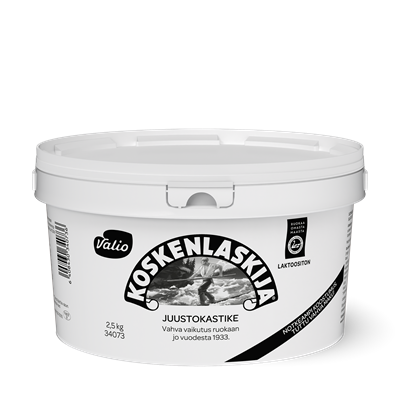 Valio Koskenlaskija® maustamaton on juustokastike, joka maistuu herkulliselta kylmänä tai kuumana. Se antaa reilusti juustoista makua ja suussasulavaa täyteläisyyttä mihin ikinä sitä käytätkään! Dippaa, mausta, mehevöitä tai kuorruta. Kokeile myös keittoihin, pastakastikkeeseen tai hampurilaisen väliin. Valio Koskenlaskija® maustamaton sopii aivan erityisen hyvin uuniruokiin kuten munattomaan makaronilaatikkoon.
