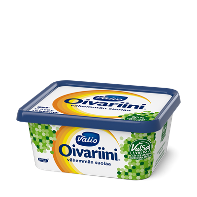Kevyempi valinta on helppo tehdä, kun mausta ei tarvitse tinkiä. Valio Oivariini® vähärasvaisempi sisältää vähemmän rasvaa ja suolaa mutta on silti täynnä tuttua herkullista makua. Pienempi suolapitoisuus onnistuu, kun osa tavallisesta suolasta korvataan Valio ValSa® maitosuolalla eli maidon luontaisilla mineraaleilla. Sipaise leivälle, käytä ruuanlaitossa tai leivonnassa – ja nauti. Kaikki Valio Oivariini® tuotteet valmistetaan aina tuoreesta suomalaisesta voista ja pehmeästä rapsiöljystä ilman lisäaineita ja säilöntäaineita. Ne ovat luonnollinen valinta koko perheelle.