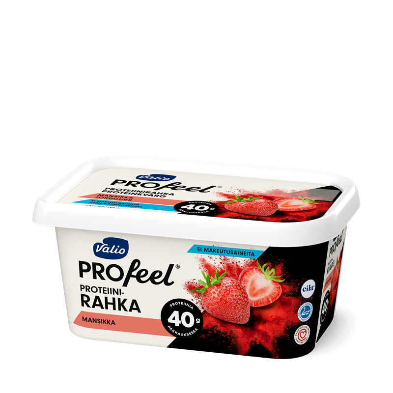 Ruoki tavoitteitasi proteiinilla! Valio PROfeel® proteiinirahka mansikka on pehmeä ja mansikkainen välipala. Nauti rasvaton ja laktoositon proteiinirahka vaikkapa töissä välipalana tai treenien jälkeen. Yhdessä 400 g pakkauksessa on 40 g laadukasta maitoproteiinia, joka sisältää kaikki elimistön tarvitsemat yhdeksän välttämätöntä aminohappoa samassa paketissa. Uusi 400g kokoinen rasia on erityisen monikäyttöinen – siitä riittää jaettavaksi tai proteiinilisäksi smoothieen. Tuotteella on myös sydänmerkki, joka kertoo sen olevan tuoteryhmässään terveellinen valinta. Nauti osana tasapainoista ja monipuolista ruokavaliota sekä terveitä elämäntapoja, ja kokeile myös muita herkullisia Valio PROfeel® -sarjan proteiinirahkoja!