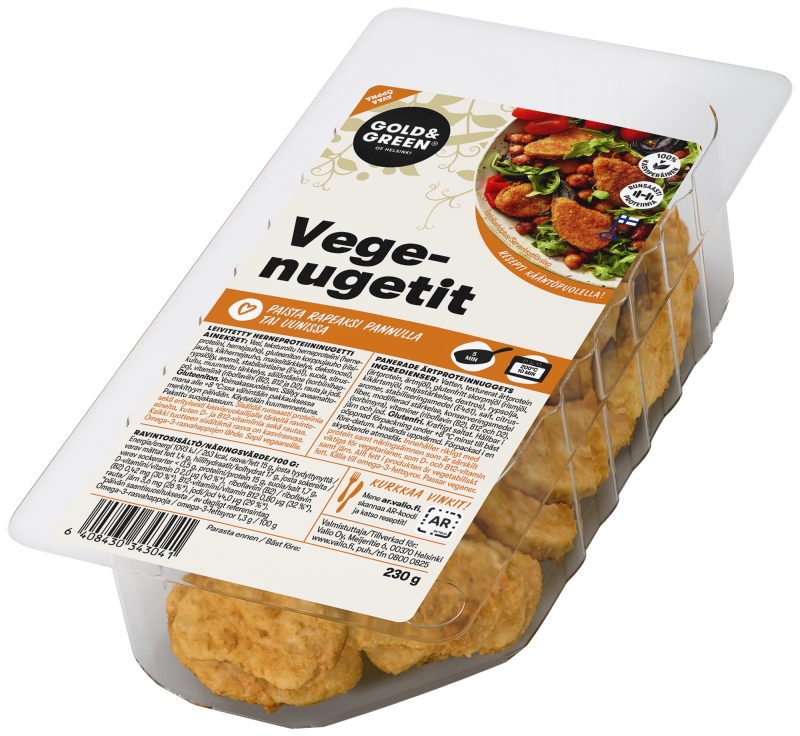 Tuote vedetään takaisin varotoimenpiteenä, koska samana päivänä samalla tuotantolinjalla valmistetusta tuotteesta on löytynyt epäily mikrobiologisesta poikkeamasta. Tuotetta Gold&Green® Vegenugetit pakkauskoossa 230 g parasta ennen -päiväyksellä 4.10. ei tule käyttää.